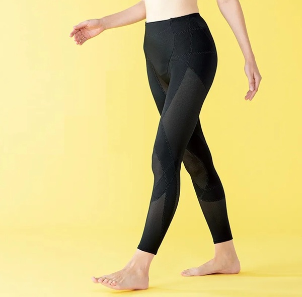 「バランスサポートスパッツ」はテーピング理論に基づき、ひざ・腰・股関節・おしり・太もも・ふくらはぎの6か所をサポートするスパッツ。