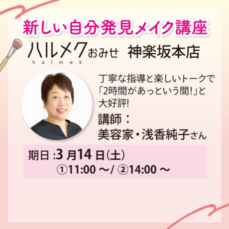 誌面でもおなじみの美容家・浅香純子さんをお招きし、「肌を磨き上げる」ためのメイクレッスンを開催いたします。スキンケアからベースメイクを中心に、気になる眉の描き方まで丁寧にお伝えします。