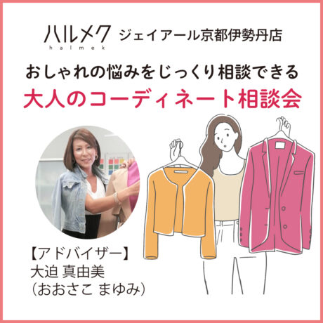 「毎日のコーディネートが決まらない。」「自分に似合う色を知りたい。」「もっとおしゃれを楽しみたい。」大人ならではのお悩みやご希望を丁寧に伺い、お一人おひとりに合うコーディネートをご提案いたします。