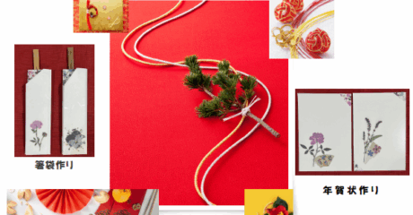 押し花を使ったオリジナル作品(年賀状、箸袋)を制作します。