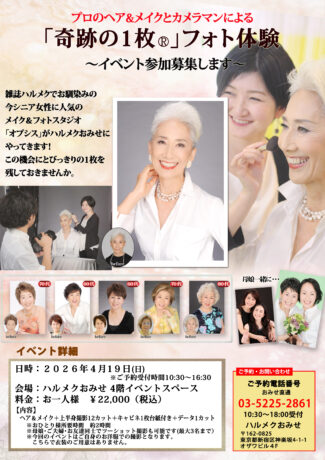 おみせからのご案内:メイク&フォトスタジオ「オプシス」が来店。プロのヘア&メイクとカメラマンがあなたの魅力を引き出し『奇跡の1枚®』を撮影します。今回で6回目の開催となり、毎回好評のイベントです。この機会にとびっきりの1枚を残しませんか?