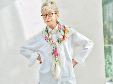 「アクセサリー感覚でいい」と語るサチコさんのスカーフの巻き方は至ってシンプル。